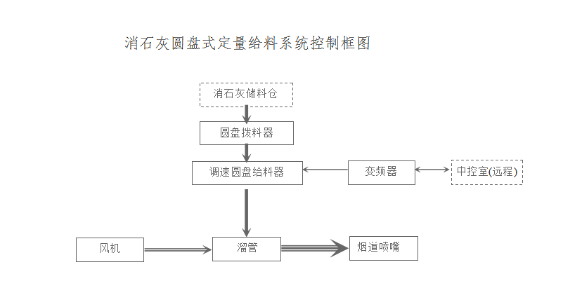 該系統(tǒng)包含圓盤式定量給料機(jī)、就地控制箱,圓盤式消石灰定量給料系統(tǒng)具有遠(yuǎn)程控制功能。